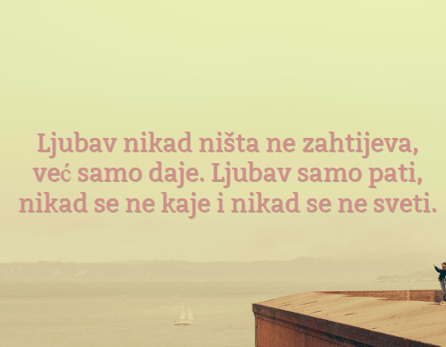 Ljubav nikad ništa ne zahtijeva, već samo daje. Ljubav samo pati, nikad se ne kaje i nikad se ne sveti.