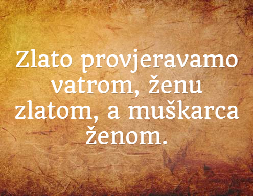 Zlato provjeravamo vatrom, ženu zlatom, a muškarca ženom.