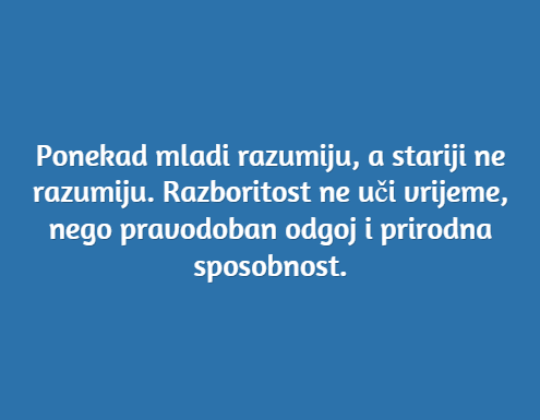Ponekad mladi razumiju, a stariji ne razumiju. Razboritost ne uči vrijeme, nego pravodoban odgoj i prirodna sposobnost.